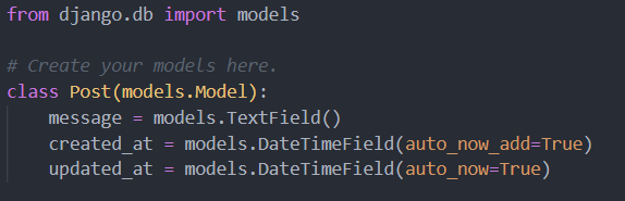 - DateTimeField의 auto_now_add는 새로운 내용을 생성시 현재 시간을 새롭게 적어 만들어주는 옵션