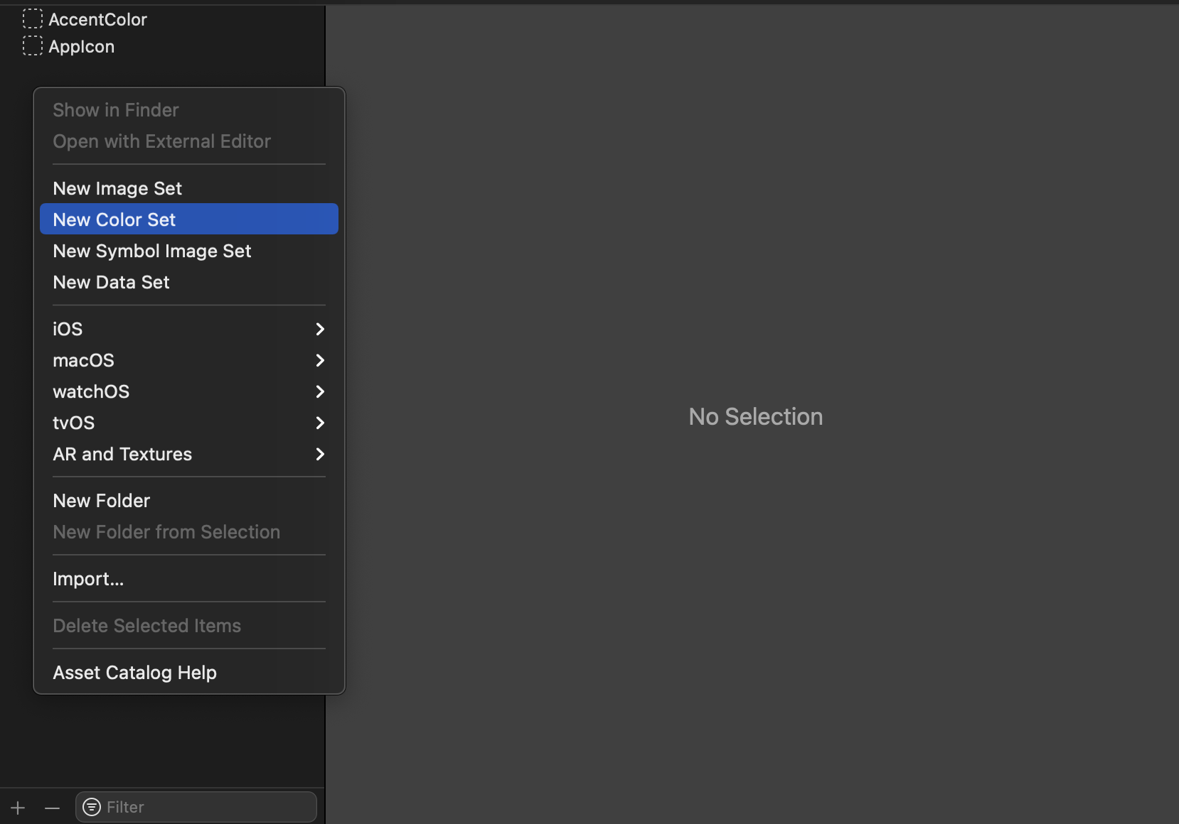 우선 프로젝트의 Assets.xcassets에 들어가요