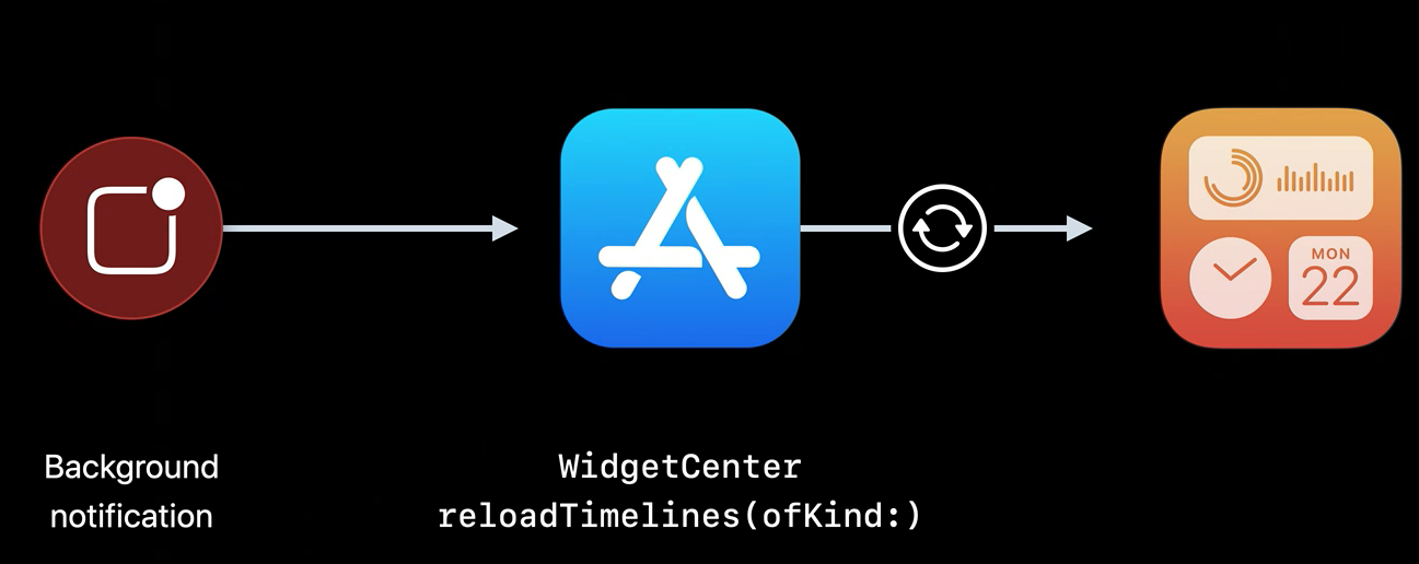 예를 들어, Background notification이 발생할 경우나 유저가 app 내에서 데이터를 변경시킬 경우 WidgetCenter는 위젯을 realod 시켜요.