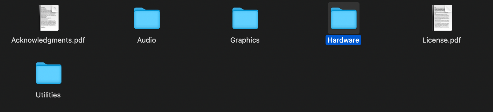 현재 본인의 Xcode 버전에 맞는 툴을 받아 dmg 파일을 실행시키면 아래와 같이 폴더가 구분돼요.