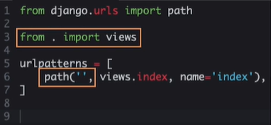 - app 내의 urls.py을 만들어 설정해준다. views모듈을 같은 posts 패키지 내에서 import해주기 때문에 현재 디렉토리를 뜻하는 . 에서 import 해준다. 또 path에서 원래 적었던 'posts/' 가 아닌 빈 문자열로 설정해준다.