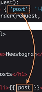 - dict, list, instance 어떤 형태이든 html에서는 파이썬 코드가 아니므로 .(dot)으로 접근한다.