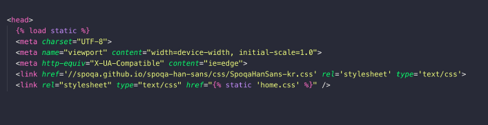- head에 link와 load static을 넣어준다.