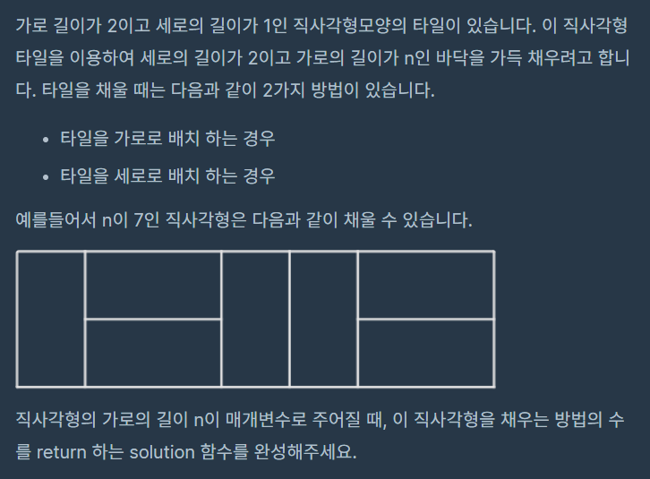 프로그래머스 - 2 x n 타일링 [Python] 본문